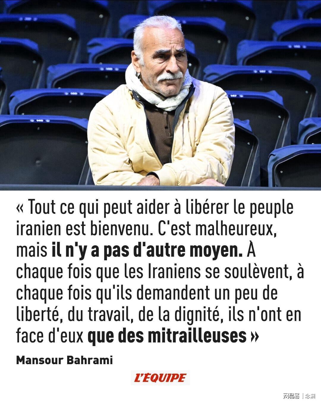 北京时间3月3日,法国籍伊朗裔网球名将曼苏尔-巴赫拉米在接受法国《队报》采访时,谈到了伊朗与美国以色列之间的这场战争。